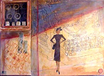 12 x 17 inches, wax, acrylic and found objects on three canvases